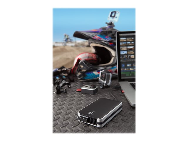 The anodized, all-aluminum enclosure helps protect the drives inside so whether you're filming a new documentary out in the field or presenting your portfolio to a client, My Passport Pro is designed for any on-the-go workflow.