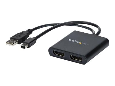 Med denna MST-hubb kan du ansluta två DisplayPort-skärmar till din Mini DisplayPort-dator. MST fungerar på alla Windows -enheter som stöder DisplayPort 1.2, som till exempel modeller av Lenovo Think Pad och Microsoft Surface . Vid anslutning till tidigare versioner av DisplayPort, som till exempel DP 1.1, fungerar MST-hubben som en videosplitter. MST-hubben är USB-driven så att det enda du behöver för att använda hubben är din dator.