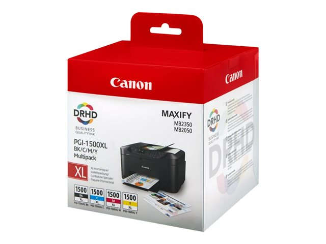 Canon PGI-1500XL C/M/Y/BK Multipack - Lång livslängd - svart, gul, cyan, magenta - original - bläcktank - för MAXIFY MB2050, MB2150, MB2155, MB2350, MB2750, MB2755