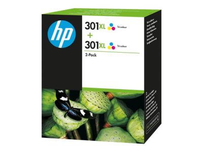 HP 301XL - 2-pack - Lång livslängd - färg (cyan, magenta, gul) - original - bläckpatron - för HP DeskJet 1000, 1010, 1050 AiO, 1050A AiO, 1510 AiO, 2000, 2050 AiO, 2050A AiO, 2510 AiO, 2540 AiO, 3000, 3050 AiO, 3050A eAiO, 3510 eAiO series, HP ENVY 4500 eAiO, 5530 eAiO series, HP OfficeJet 2620 AiO, 4630 eAiO series D8J46AE