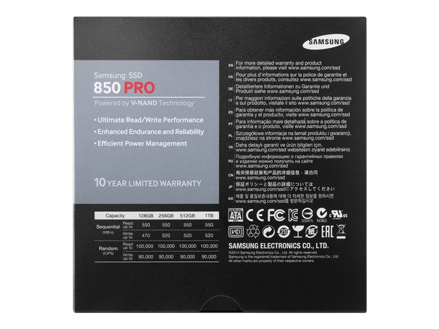 Samsung 850 PRO MZ-7KE256BW - SSD - krypterat - 256 GB - inbyggd - 2.5" - SATA 6Gb/s - buffert: 512 MB - Self-Encrypting Drive (SED), TCG Opal Encryption 2.0 MZ-7KE256BW