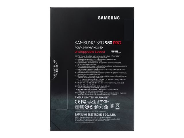 Samsung 980 PRO MZ-V8P500BW - SSD - krypterat - 500 GB - inbyggd - M.2 2280 - PCIe 4.0 x4 (NVMe) - buffert: 512 MB - 256 bitars AES - TCG Opal Encryption - för Intel Next Unit of Computing 13 Extreme Kit - NUC13RNGi5, 13 Extreme Kit - NUC13RNGi7 MZ-V8P500BW
