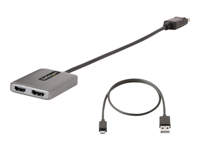 StarTech.com DP to Dual HDMI MST HUB, Dual HDMI 4K 60Hz, DisplayPort Multi Monitor Adapter with 1ft (30cm) Cable, DP 1.4 Multi Stream Transport Hub, DSC | HBR3, DP to 2x HDMI Ports - DP to HDMI Splitter (MST14DP122HD) - Videokort - DisplayPort hane till HDMI hona - grå MST14DP122HD