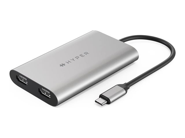 HyperDrive Dual - Videokort - 24 pin USB-C till HDMI, 24 pin USB-C - USB-strömförsörjning (100W), 4K30 Hz (HDMI bildskärm 2), 4K 60 Hz (HDMI bildskärm 1)