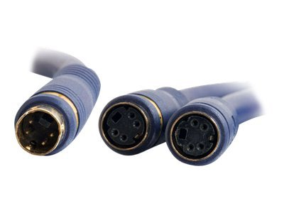 The Velocity S-video Y-cable from C2G is the solution for sending a single S-video signal to two devices. A dual coax design, this S-video cable transports the black-and-white picture detail information and the chrominance color information on separate pathways.