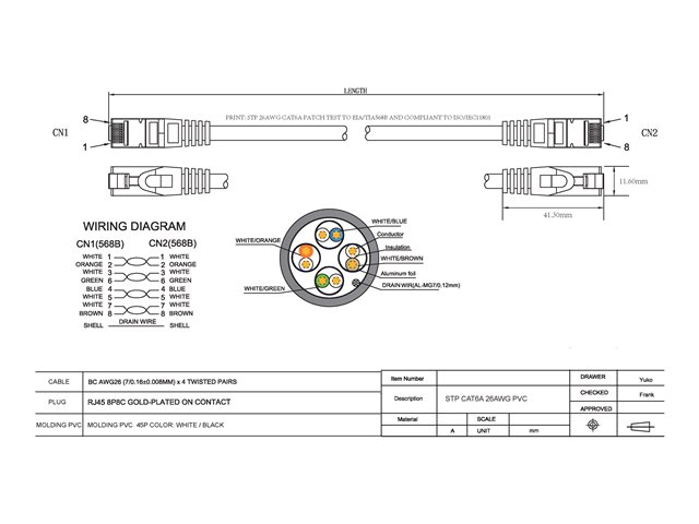 | Egenskaper | Formpressad, hakfri, rena kopparledare, upp till 10 Gbps |