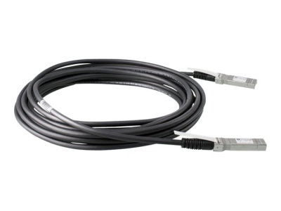 A 5m direct attach copper cable with an XFP connector attached on one end and an SFP+ connector attached on the other end. This cable provides a low price connectivity option between switches/servers/storage to interconnect XFP and SFP+ form factors.