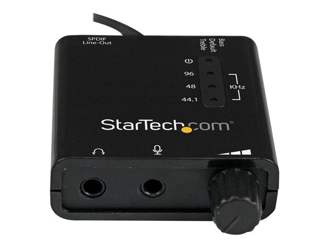 Förhöj din ljudupplevelse med StarTech.com USB-ljudkort med SPDIF digitalt ljud och stereomikrofon. Detta externa ljudkort för bärbara datorer eller PC är utformat för att leverera exceptionell ljudkvalitet med sin 24-bitars DAC-upplösning och max samplingsfrekvens på 96 kHz, vilket säkerställer att du hör varje detalj i din musik, dina spel och dina filmer. Ljudkortets stereoutgång, kombinerat med SPDIF digitalt ljudstöd, möjliggör både högkvalitativa analoga och rena digitala ljudanslutningar.