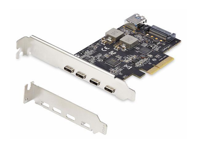 Uppgradera din dators anslutningsmöjligheter med StarTech.com 5-Port USB PCIe Card. Detta USB 3.2 10 Gbps PCI Express-kort har fyra externa USB-C-portar och en intern USB-A-port, vilket ger ett brett utbud av anslutningsmöjligheter för olika enheter. Med stöd för USB 3.2 Gen 2 levererar det dataöverföringshastigheter på upp till 10 Gbps, vilket möjliggör snabba och effektiva filöverföringar. Detta mångsidiga USB PCIe-kontrollkort är kompatibelt med Windows, macOS och Linux och ger ett brett stöd för operativsystem. Det innehåller också en 15-polig Serial ATA-strömkontakt som ger tillförlitlig strömförsörjning till anslutna enheter. Kortets plug-in-formfaktor och PCI Express 3.0-kompatibilitet gör det till en enkel och effektiv uppgradering för att förbättra systemets anslutningsmöjligheter.