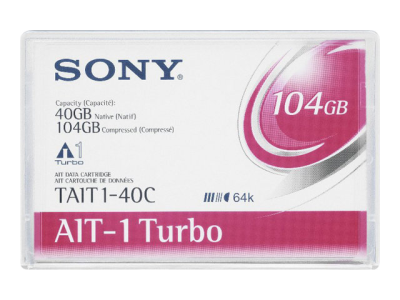 AIT Turbo-band med IC-minne på 64 kbit. Kostnadseffektiv lagringskapacitet på 40 GB normalt och 104 GB komprimerat. Det är idealiskt för säkerhetskopiering för mindre företag.