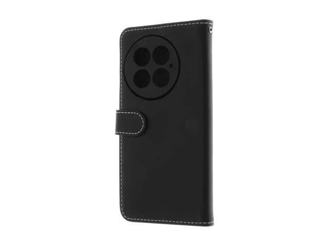 Insmat - Vikbart fodral för mobiltelefon - genuint läder, kartong+papper+aluminiumfolie, termoplastisk polyuretan (TPU), bomullssömmar - svart - för OnePlus 13