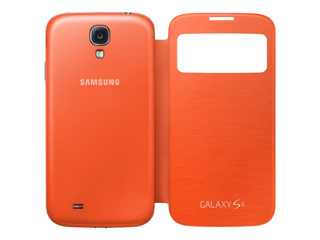 Samsung S View EF-CI950B - Vikbart fodral för mobiltelefon - polyuretan, polykarbonat - orange - för Galaxy S4 EF-CI950BOEGWW