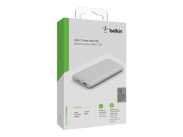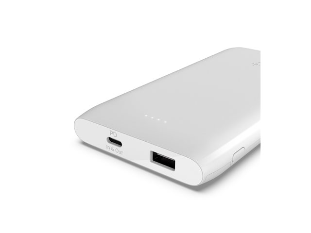 Belkin BoostCharge - Strömförsörjningsbank - 10000 mAh - 18 Watt - Fast Charge, PD - 2 utdatakontakter (USB, 24 pin USB-C) - vit
