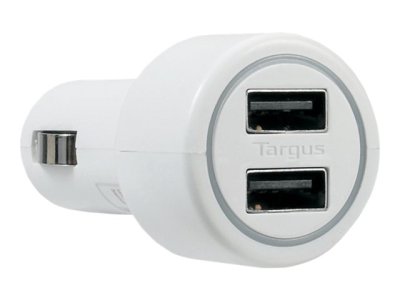 Targus Dual USB Car Charger For Media Tablets & Mobile Phones - Strömadapter för bil - 5.1 VA - 3.1 A - 2 utdatakontakter (USB) - vit APD0502EU