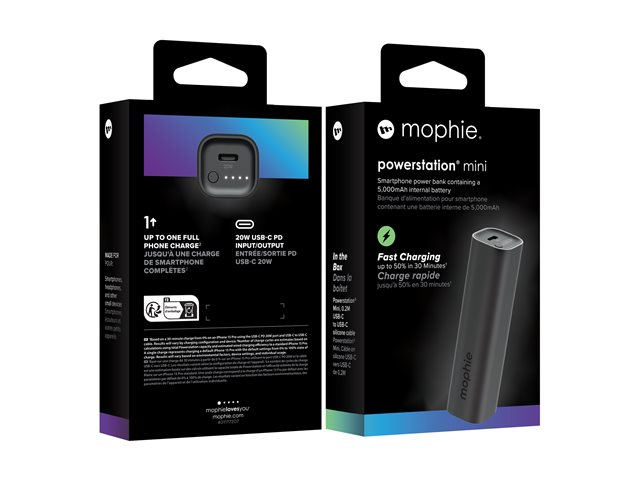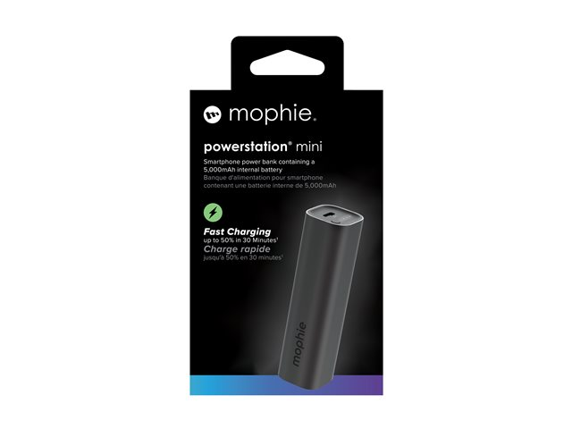 mophie powerstation mini - Strömförsörjningsbank - 5000 mAh - 20 Watt - PD (24 pin USB-C) - på kabel: USB-C - svart