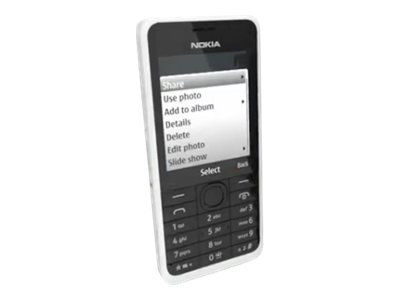 Nokia 301 - Mobiltelefon - 3G microSDHC kortplats - 320 x 240 pixlar - TFT - 3.2 Mpix - vit A00011245
