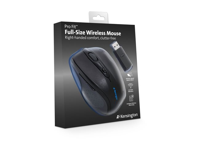 Kensington Pro Fit Full-Size - Mus - högerhänt - optisk - 6 knappar - trådlös - 2.4 GHz - trådlös USB-mottagare - svart