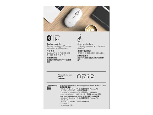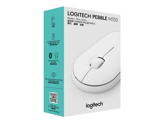Logitech Pebble M350 - Mus - optisk - 3 knappar - trådlös - 2.4 GHz, Bluetooth - trådlös USB-mottagare - offwhite 910-005716