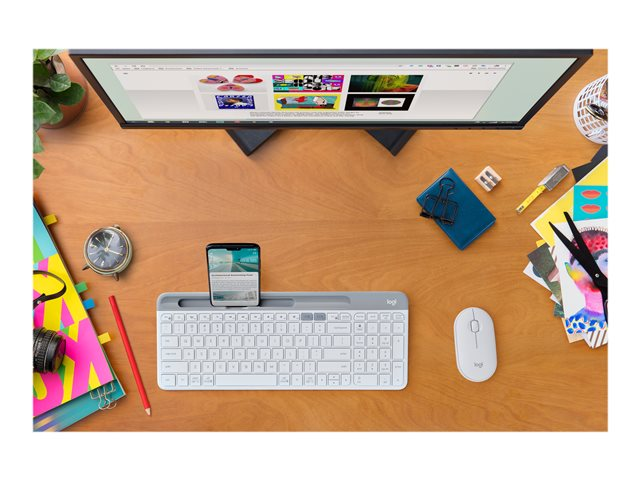 Logitech Pebble M350 - Mus - optisk - 3 knappar - trådlös - 2.4 GHz, Bluetooth - trådlös USB-mottagare - offwhite