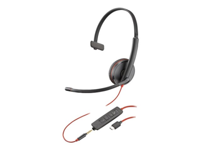 HP Poly Blackwire C3215 - Blackwire 3200 Series - headset - på örat - kabelansluten - USB-C, 3,5 mm kontakt - svart - Skype-certifierat, Cisco Jabber-certifierad, Avaya-certifierad