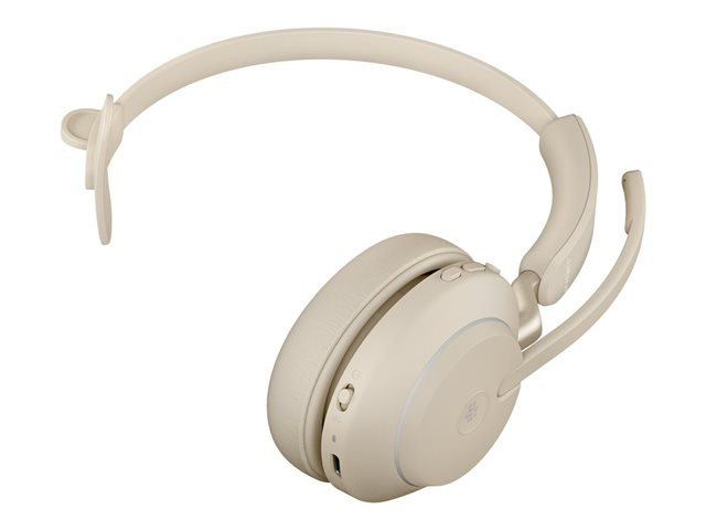 Jabra Evolve2 65 MS Mono - Headset - på örat - konvertibel - Bluetooth - trådlös - USB-C - ljudisolerande - beige - med laddningsställ - Certifierad för Microsoft-teams 26599-899-888