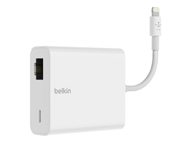 Belkin Ethernet + Power Adapter with Lightning Connector - Nätverksadapter - Lightning - 10/100 Ethernet (PoE) x 1 - vit - för Apple 10.5-inch iPad Pro; 12.9-inch iPad Pro; 9.7-inch iPad; 9.7-inch iPad Pro; iPad Air 2