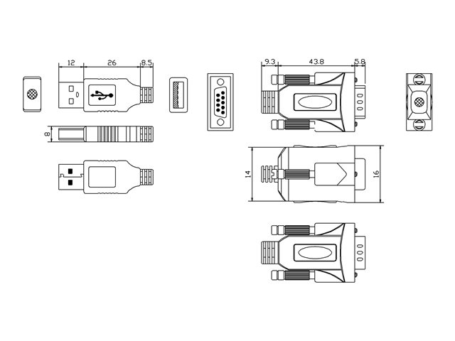 Vision USB to Serial Adaptor - Seriell adapter - USB - RS-232 - svart