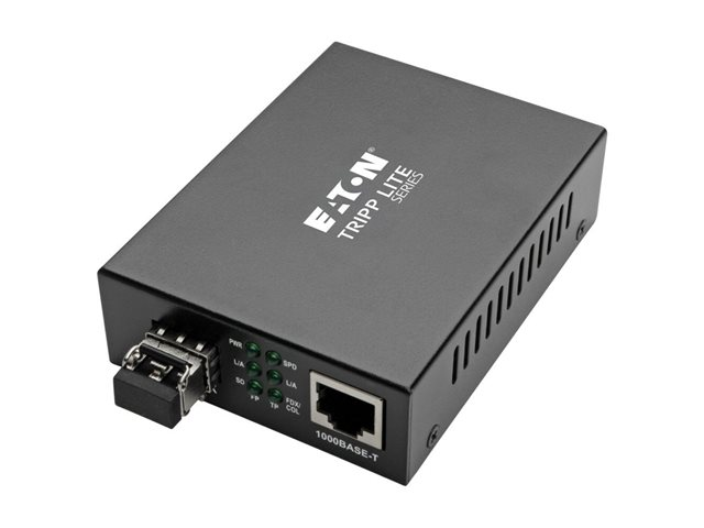 Eaton Tripp Lite Series Gigabit Multimode Fiber to Ethernet Media Converter, 10/100/1000 LC, International Power Supply, 850 nm, 550 m (1,804 ft.) - Fibermediekonverterare - 1GbE - 10Base-T, 100Base-TX, 1000Base-T - RJ-45 / LC multiläge - upp till 550 m - 850 nm