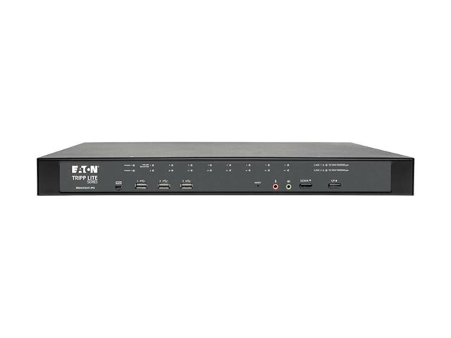 The Eaton Tripp Lite 16-Port Cat5 KVM over IP Switch with Virtual Media is a comprehensive solution designed for efficient server and network management. This 1U rack-mount device supports one local and one remote user, offering flexibility in access and control. With its robust security features, including multiple authentication methods and encryption algorithms, it ensures secure and reliable access to critical resources. The switch supports high-resolution video up to 1920 x 1200, making it suitable for environments where clarity and detail are paramount.