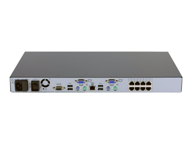 | Gränssnitt | 8 x KVM - RJ-45 1 x RS-232 - 9 pin D-Sub (DB-9) - hantering 1 x stackenhet för nätverk - RJ-45 1 x USB 1 x mus (PS/2) 1 x tangentbord (PS/2) 1 x VGA - HD-15 |