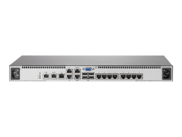 HPE IP Console G2 Switch with Virtual Media and CAC 1x1Ex8 - Omkopplare för tangentbord/video/mus - 8 x KVM port(s) - 1 lokal användare - 1 IP-användare - skrivbordsmodell - för HPE 10XXX G2, 600, 800; Advanced Series Racks 42U 600; ProLiant DL20 Gen9, e2000 G6; Rack