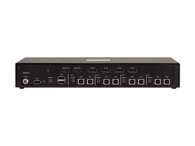 | Funktioner | Dubbel bildskärmsstöd, NIAP Protection Profile 4.0, 4K 30 Hz-stöd, anti-manipuleringsskydd, 2-kanals analogt ljud, tryckknapp, metallhölje, stöd för CAC-läsare |