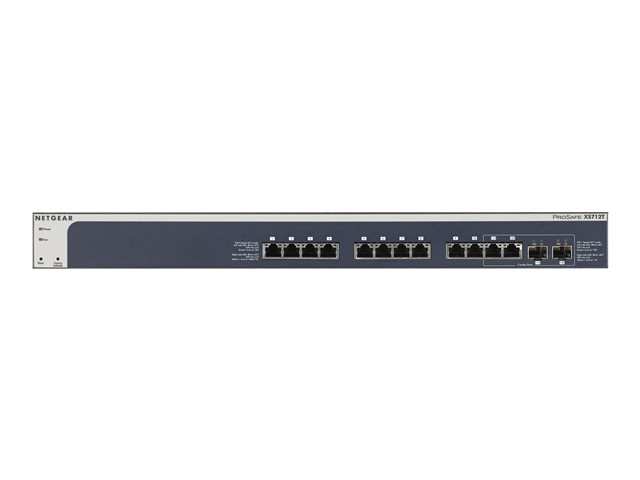 The XS712T is a powerful Smart Managed Switch that includes 12 ports of 10-Gigabit connectivity (12 copper with 2 shared combo copper/SFP+ Fiber ports). NETGEAR's 10-Gigabit Smart Managed Switches are purposely designed as a cost-effective way to provide 10G connections to 10G-capable servers and NAS (Network Attached Storage) systems. The XS712T provides comprehensive L2+/Layer 3 Lite features (including IPV6 management) allowing SMB customers to deploy virtualization, cloud-based services and applications like VoIP, video streaming and IP surveillance, which require higher reliability, speed, and performance. It can be used at the "center of a small business network" or as an aggregation/access switch in a larger organization. The XS712T is ideal for smaller workgroups that need high-bandwidth for sharing, collaborating, editing, and publishing high-density content like video or animation.