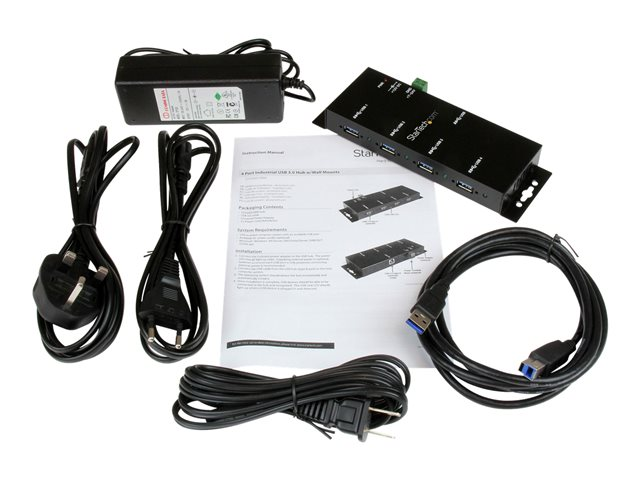 StarTech.com USB 3.0-hubb med 4 portar - Industriell USB-A-hubb i metall - USB-datahubb som kan monteras på vägg eller skrivbord - TAA-kompatibel USB-expansionshubb - Hubb - 4 x SuperSpeed USB 3.0 - skrivbordsmodell - Likström - för P/N: ITB20D3250, MSDREADU2OTG, SVA12M5NA, USB312SAT3CB, USB315CB2M, USBLTM1MBK, USBLTM1MWH ST4300USBM